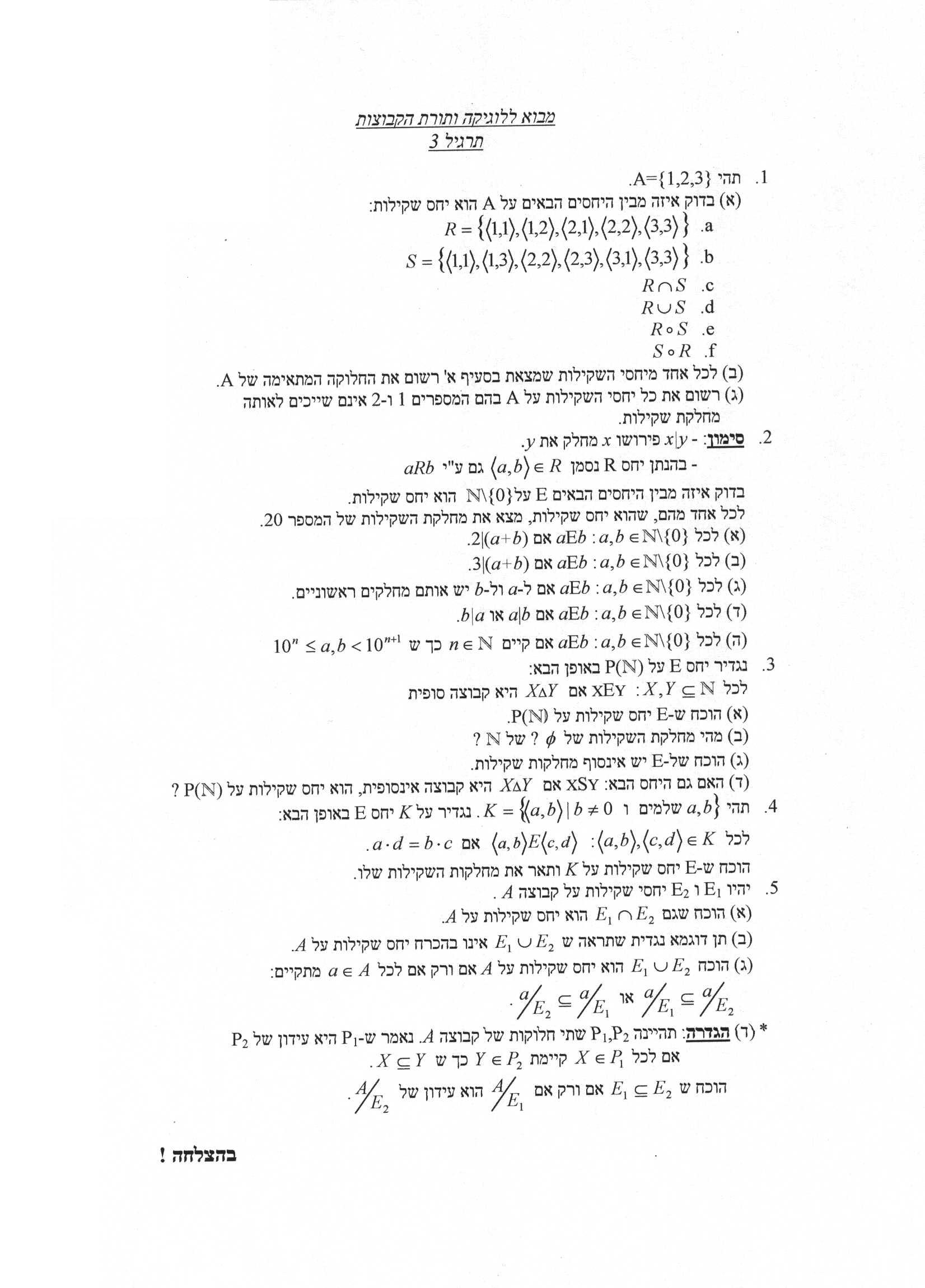 Sets, set operations, relations, equivalence